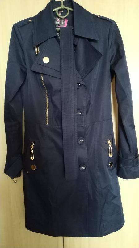 Плащ у відмінному стані,колір темно-синій.Кишені й замки в робочому стані.Є пояс ,але можна носити плащ без пояса.Довжина виробу 88 см,в плечах 37 см,в талії 78 см.