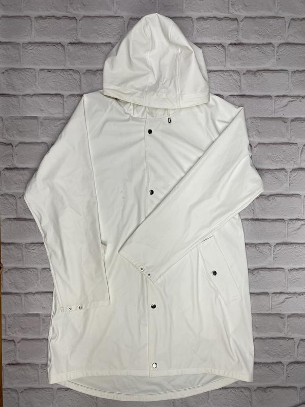 Дождевик белый 157 the black label collection РАСПРОДАЖА 🐈♦️Размер XL 🐈♦️Длина 89 см 🐈♦️Длина зад 95,5 см 🐈♦️Подмышками 59 см 🐈♦️Рукав от горловины 75 см 🐈♦️На кнопках Есть пятна на капюшоне и спереди Капюшон заклеен { последнее фото}