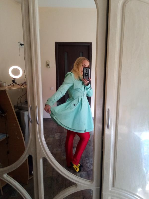 новенький тренчик на тендітну леді колір м'яти, ніжно голубий, постельно бірюзовий. як на фото. s. низ сонцеклин. дуууже жіночний. ґудзики в два ряди підкреслюють талію.