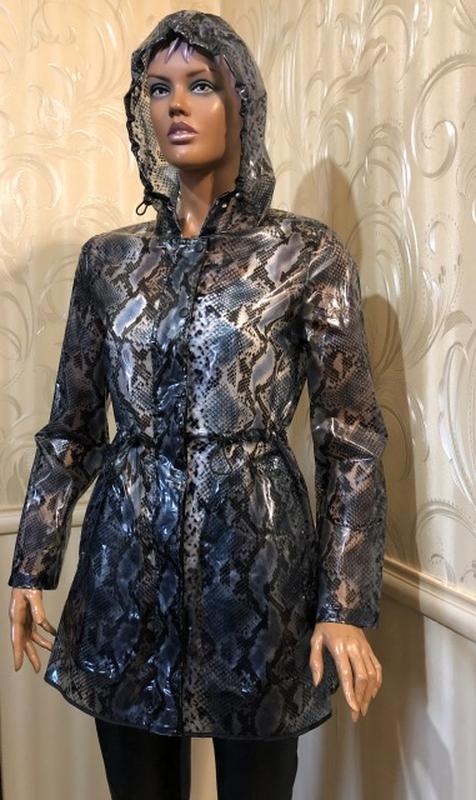 Прозрачная куртка/плащ/дождевик с вшитым капюшоном (капюшон затягивается на кулиску с фиксаторами) в змеиный принт, прямого кроя, по бокам карманы, талия на кулиске с фиксаторами, застегивается на змейку и кнопки, без подкладки. Бренд NEXT. Состав: 100% полиуретан. Размер 6/S. Состояние идеальное, без дефектов. Замеры: плечи -40 см., ПОГ - 49 см., ПОТ/затягивается на кулиску - 49 см., ПОниз - 60 см., длина от плеча - 80 см., длина по центру спинки - 79 см., длина рукава: внешняя - 62 см., внутренняя - 45 см. Размер манекена S. Добро пожаловать в наш магазин. Известные бренды, отличное качество - доступные цены. Условия доставки: - Отправим вещь Новой почтой, Укрпочтой после 100% предоплаты на карту Приват; - почтовые расходы за счет покупателя; наложенного платежа, возврата/обмена нет. Все посылки обязательно пересматривайте в отделениях почты! Если возникнут вопросы к состоянию (наличие пятен/дефектов), составляйте акт в присутствии работника почты и обязательно отправьте нам из почтового отделения в переписку с Шафой фото дефекта). Перед отправкой посылки все вещи пересматриваются на наличие дефектов. Если дефекты не обнаружены, посылка отправляется! Если Вы забрали вещь в почтовом отделении и она Вам не подошла, вещь из дома возврату не подлежит! Во избежание неприятных ситуаций четко придерживайтесь наших правил!