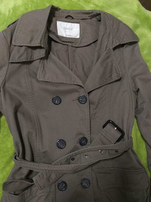 Шановний плащ на весну, осінь Розмір на бірці М Відмінно буде на ріст 160-168 ПОБІДИ 47 см Довжина 77-79 см Недолік: на останньому фото (під пахвою) при носінні непомітно Причина продажу: стало мало