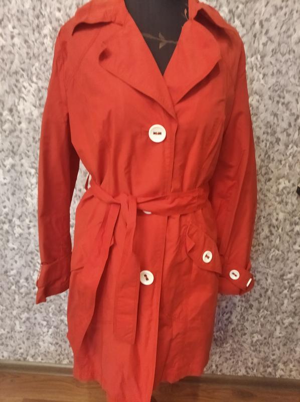 Плащ жіночий з кишенями і поясом, в ідеальному стані , довжина 87 см, рукав 61 см, обхват біцепсу 42 см напівобхват грудей - 55 см, талії - 50, стегон -58. Стан ідеальний, всередині кишкньки для телефону та додаткова.