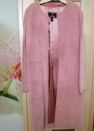 Плащ, кардиган, пальто, пиджак цвет пудра, из натуральной замши. Размер 46-48-50. ДИ 108, ПОГ 50 ПОТ 46 ПОБ 56 ДР 65 Плечи 40-41.Отправка товара новой почтой, после полной оплаты денежных средств на карту банка. ВОЗВРАТА И ОБМЕНА НЕТ!