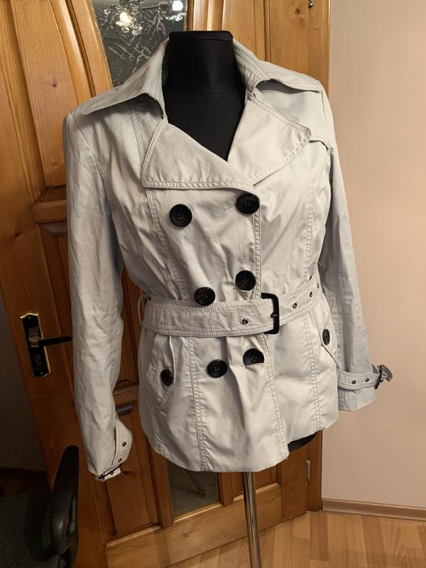 Короткий сірий тренч в дуже гарному стані слідів носіння практично нема