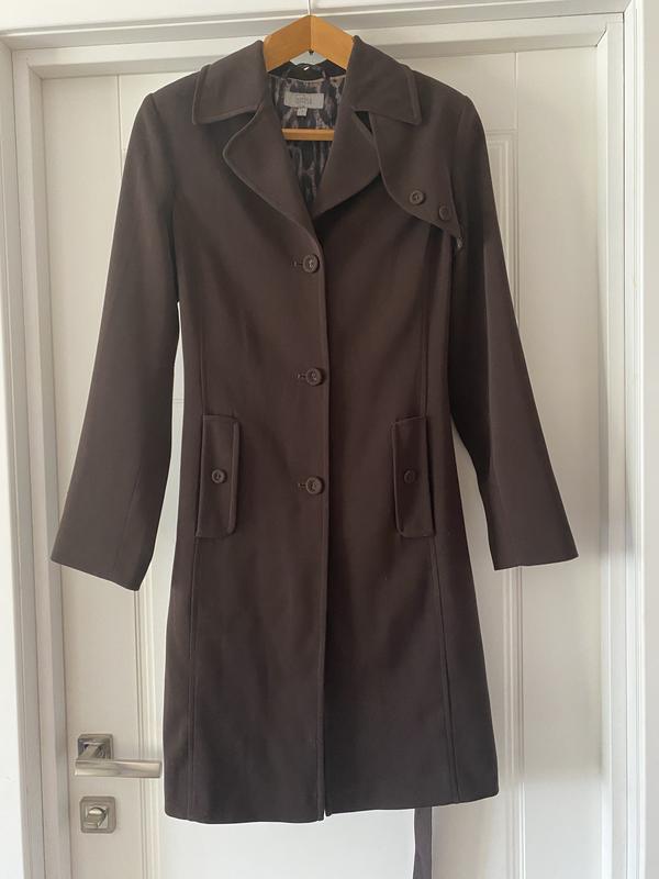 Плащ в идеальном стоянии. Цвет шоколад. Размер М. До колен.
