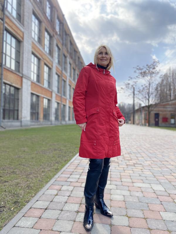 Женский приталенный плащ LaNaLe. Без Наполнителя. С Капюшоном. Состав: Плащевка и Полиэстр. Верхняя ткань с Влагоотталкивающей пропиткой, защитит от дождя. Застежка: Молния и Защитная Планочка на Кнопках. Цвет Красный ❤️.