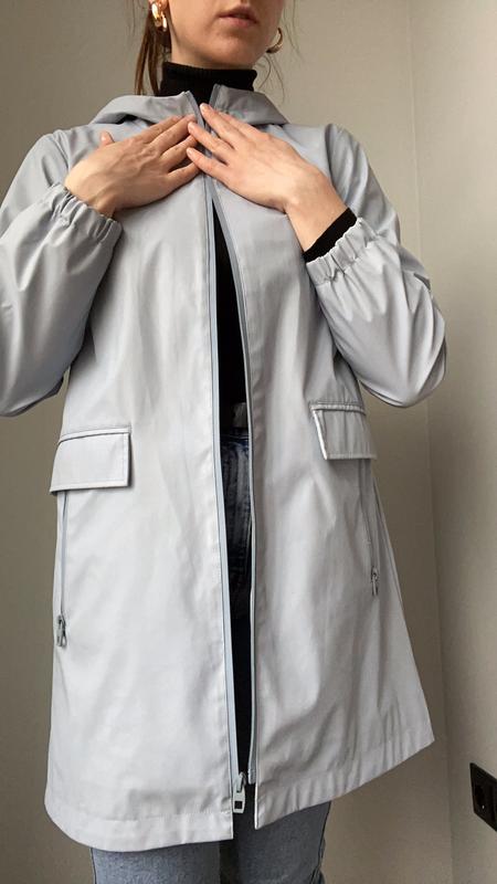 Ультрамодный дождевик небесно-голубого цвета. Есть 2 пары карманов (видео на фото) и глубокий капюшон. Не пропускает влагу, оооочень удобный! Манжеты на рукавах. Состояние идеальное