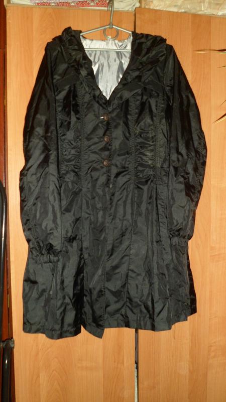 Плаш похож на водо и ветро непроницаемый. новый. не носила. сверху черный. внутри серебристый. без капюшона. на размер м. дополнительные замеры не надаю.