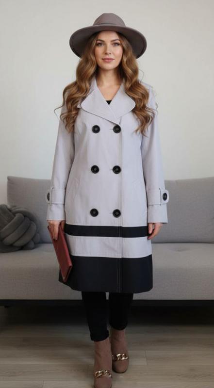 Плащ женский Размер: 44 Цвет: серый Имеет дефект: у пуговиц грязная (полоса), на рукаве. Размер 44 Обхват груди 88 см Обхват талии 84 см Обхват низа 104 см Длина 87 см Плече 12 см Обхват предплечья 46 см Обхват рукава 28 см Длина рукава 63 см