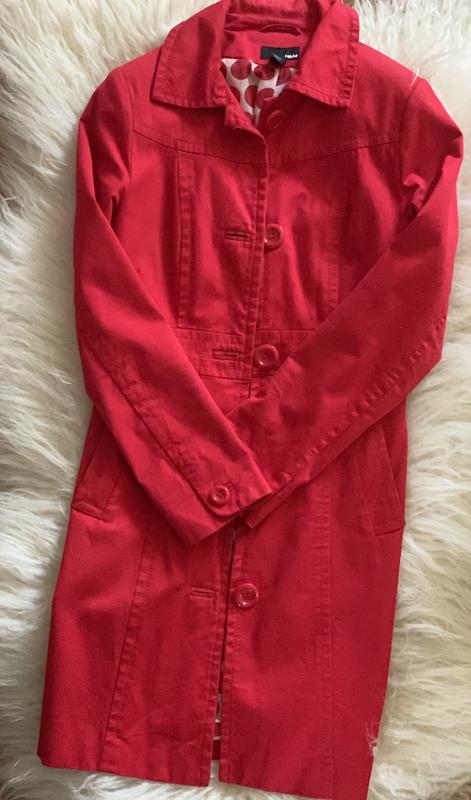 Плащ в новом состоянии,очень качественный ,насыщенный красный цвет.