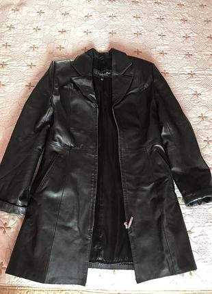 Тренч з натуральної шкіри. Італія. Розмір S Приталеного крою з підплічниками. Внизу з боків розрізи. Є кишені. На блискавці.