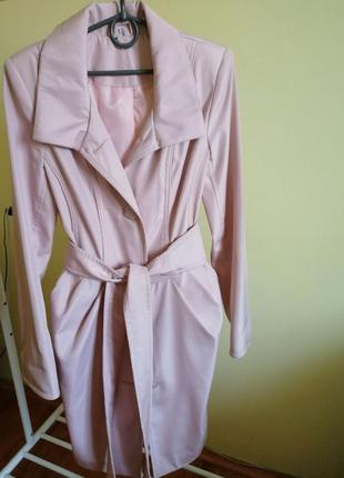 Стильний тренч пудрового кольору. Форма пошиття:тюльпан. Є поясок в комплекті. Розмір 44(М)підійде і на S. Стан ідеальний.