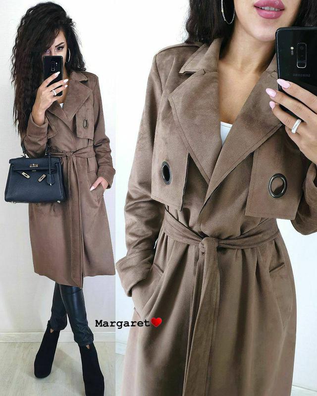 Тренч🖤 ▫️Ткань замш на дайвинге, без подклада ▫️Размер единый 42-46 ▫️Цвет капучино, марсала, темно-синий, хаки, черный