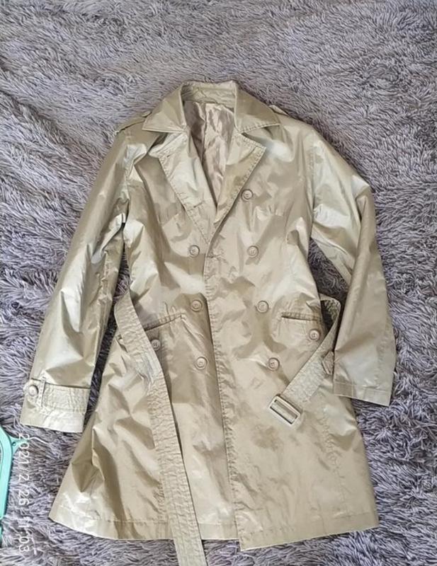 Продам тренч ніжно-золотистого кольору з карманами та поясом, в ідеальному стані, рукав - 61 см, довжина - 88 см, плечі - 41 див. Відправлю новою і укр поштою.