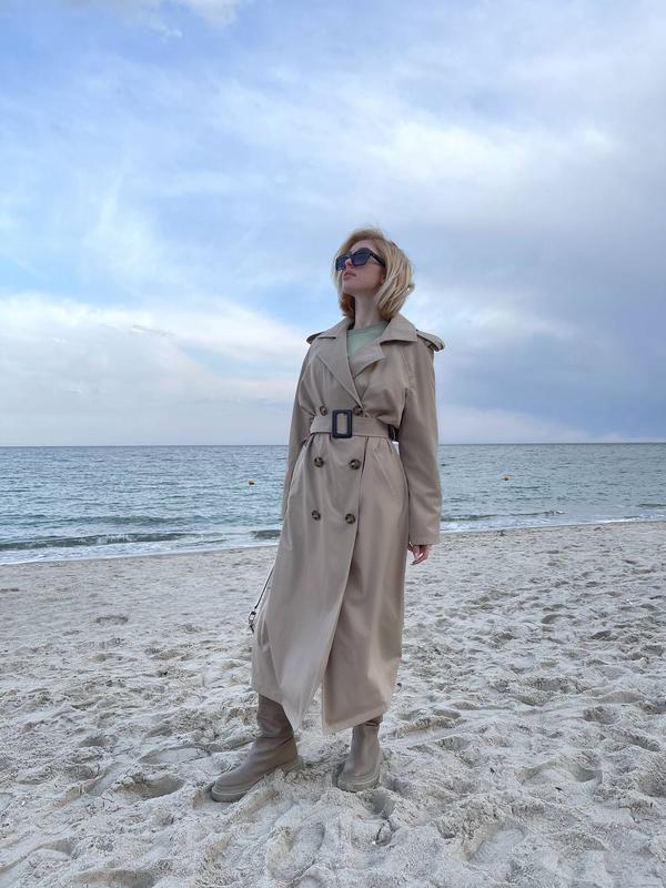 Тренч на пуговицах с регулируемым поясом. Рукав - реглан. Состав: Хлопок - 50%, полиэстер - 50%. Размер: 42-48 единственный Арт. VK / P 52