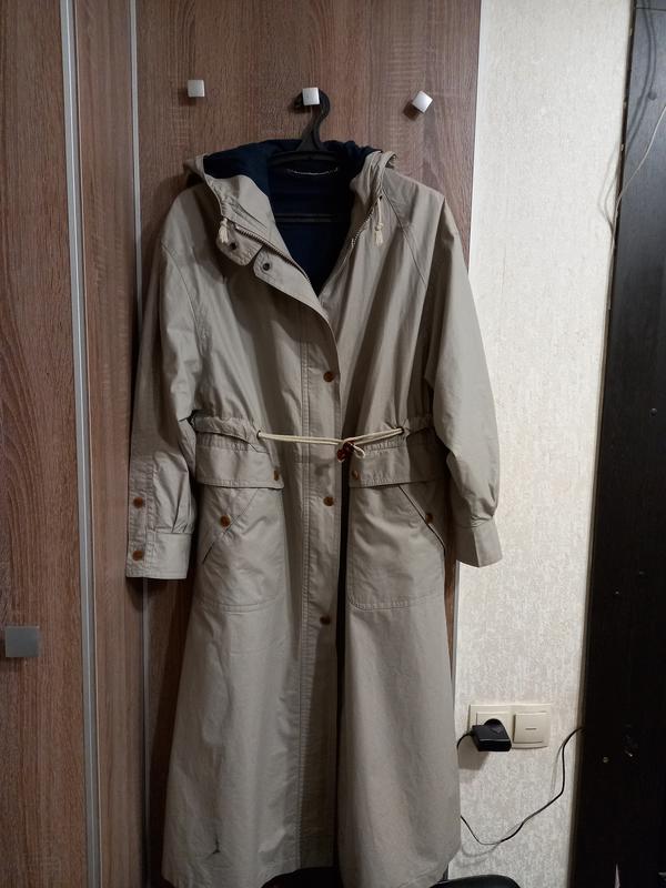 Просто шикарный женский плащ,длинный оверсайз,отличное состояние,без нюансов с капюшоном.Широкий манжет,затягивается на талии кулисой,плащ идет без подкладки(Германия,замеры:пог 56,длина по спинке 124