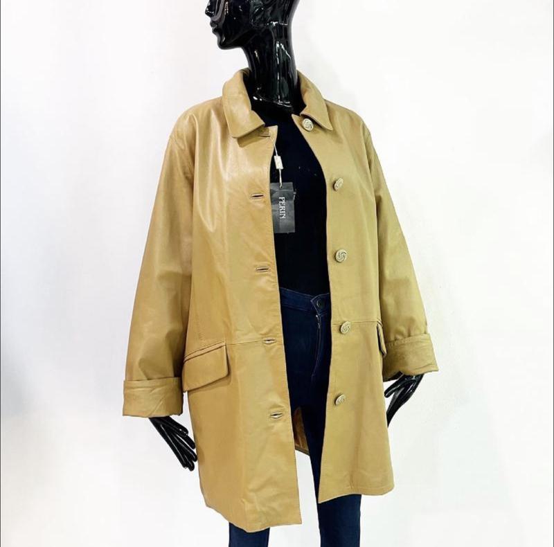 Новый кожаный плащ Perine . Сёмный капюшон с натуральным мехом, подклад слегка утеплён. Размер 46 Цена бутика была 650€