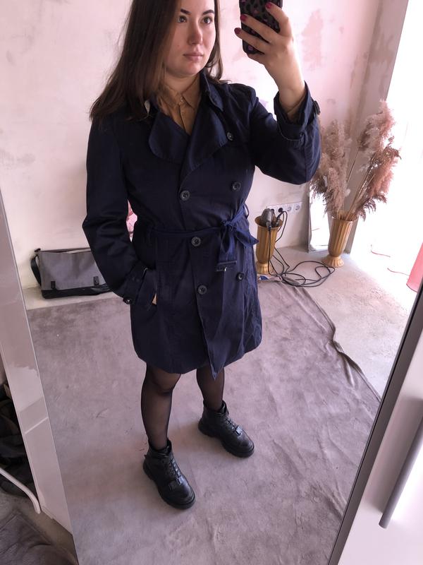 Темно синій тренч З поясом Колір поясу трохи відрізняється Видно на 7 фото