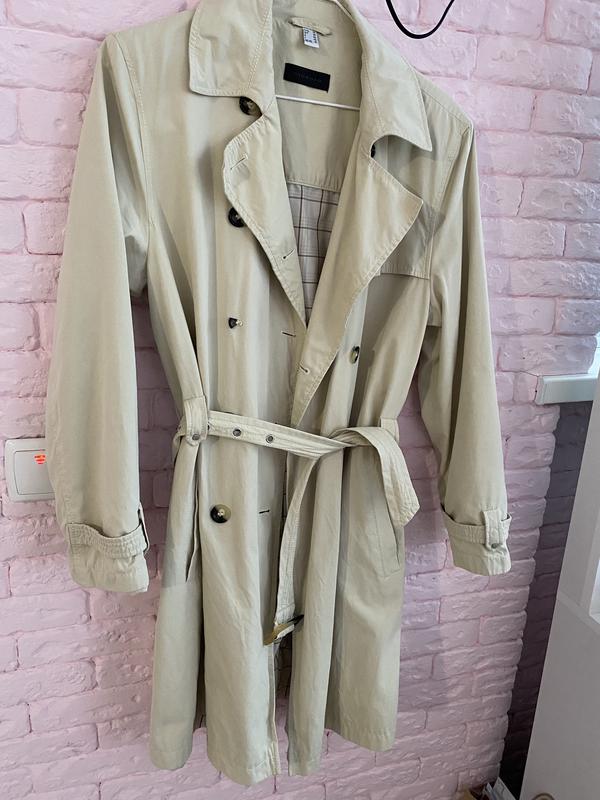 Продам плащ , состояние идеальное , но присутствуют нюансы с пуговицами (есть на фото) - на наружной стороне модно пришить вместо сломаной пуговицы, ту что с самого верху, так как ее все равно особо не видно. В цене учтено ! Больше никаких дефектов нету! Есть подкладка. Размер и остальные бирки есть на фото. В носке был пару раз. На фото рост 166 Размер подойдёт как на s( оверсайз) так и на Л
