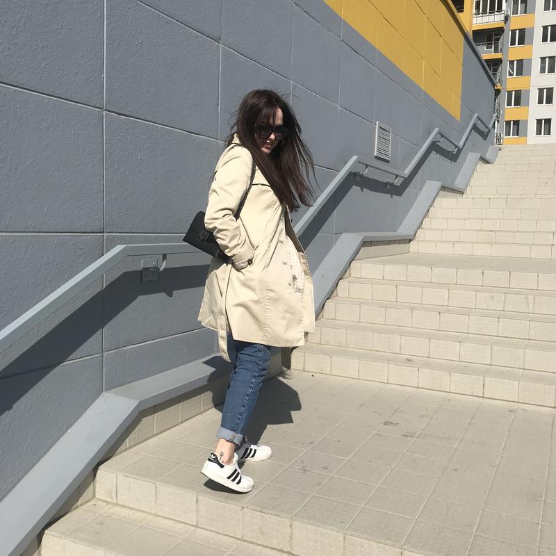 Классический тренч бежевого цвета, есть подкладка Плечи 40 Талия 50 Длина рукава 65