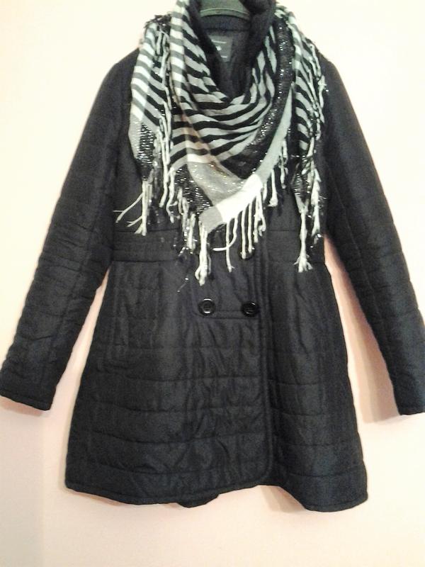 Стильний та милий плащик,приталений,від талії розходиться спідничкою.Розмір ХС-С. Довжина -80см,плечи 37см,рукав -60см,під мишками -47см