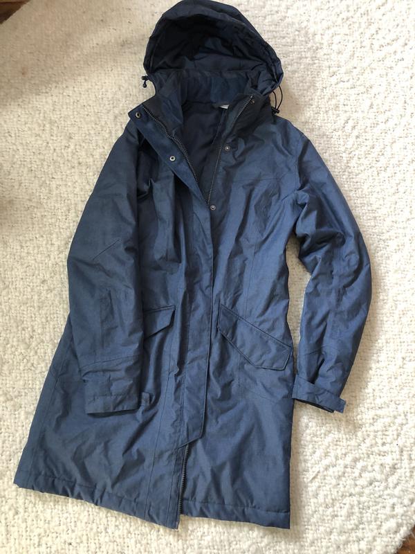 Ідеальний стан, до коліна, утеплений. Гарний глибокий синій колір. Стягується в талії