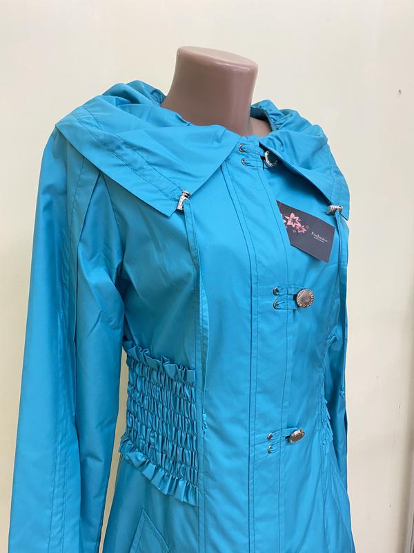 Плащ лёгкий бирюзовый. Размер S. Полуобхват в груди 45 см Полуобхват в талии 39 см Общая длина 80 см Рукав 65 см