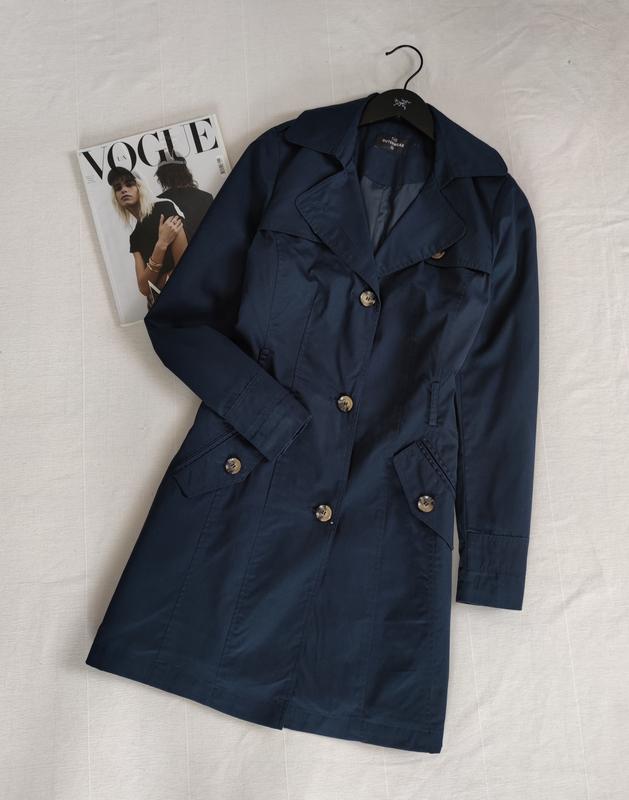 плащ в темно синьому кольорі від C&A з підкладкою, розмір вказано 38,грудей 47 см, довжина 90 см, довжина рукава 62 см
