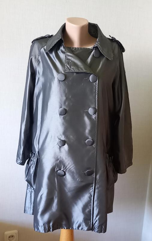 Продам плащ papayа, даухбортний, колір мокрий асфальт, відмінної якості, в ідеальному стані без дефектів, Розмір 54-56. ПОГ 58 см, рукав реглан від шиї 67 см, довжина 90 см.