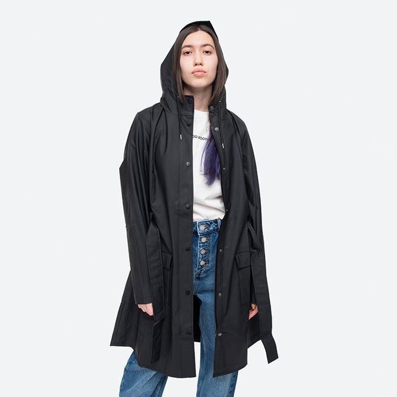 Плащ Rains Curve Jacket 1206 BLACK Матеріал:64% поліестер + 36% поліуретан Колір:чорний Додаткова інформація: Waterproof - одяг чи взуття мають властивості, які перешкоджають проникненню води крізь матеріал, навіть коли на нього чиниться тиск струменя води. При цьому матеріал зберігає повітропроникність, завдяки чому шкіра не може дихати.
