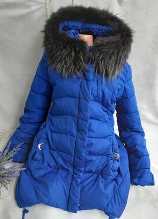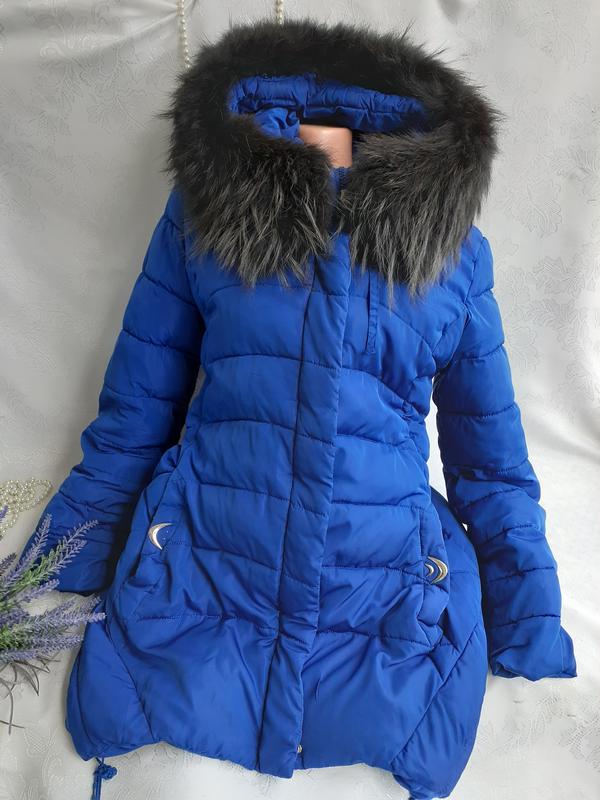 Удлинённая куртка-пуховик - парка - отличный вариант на зиму, раннюю весну или позднюю осень. 🍁❄🍃🍂 Отменное качество от OLANMEAR COLLECTION, ассиметричный крой, глубокий синий цвет, объёмный капюшон, оторочен натуральным мехом ! Модель свободного кроя, немного расширяющаяся к низу. Бока удлинены в форме треугольников. Предусмотрены удобные боковые карманы, резиночки-фиксаторы, дополнительные кнопки-застежки, высокий застегивающийся воротник. Ткань стеганная, -не продувается, отлично смотрится как с легинцами, так и со строгими брючками. Утеплен синтепоном, на шелковом подкладе, верхний слой с водоотталкивающим эффектом. Объёмный капюшон, оторочен опушкой из натурального меха песца (мех отстегивается). Размер указан XL, но на самом деле хорошо сядет на L или М. Замеры внешние: ПОГ - 50 см, полуобхват по поясу - 53 см, по бедрам - 58 см, длина по спинке - 82 см, длина рукава- 67 см, плечи - 43 см. Состояние по фото, хорошее, ❗но обратите внимание, что есть нюанс - небольшой 2 см разрыв верхнего слоя ткани, визуально не заметно, но есть (внимательно рассмотрите фото)❗