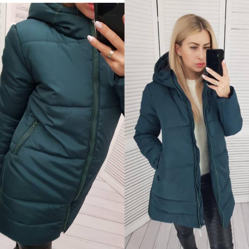 Aiza куртка зимова жіноча пуховик теплий трапеція а060 смарагд пляшкового кольору зелена з...