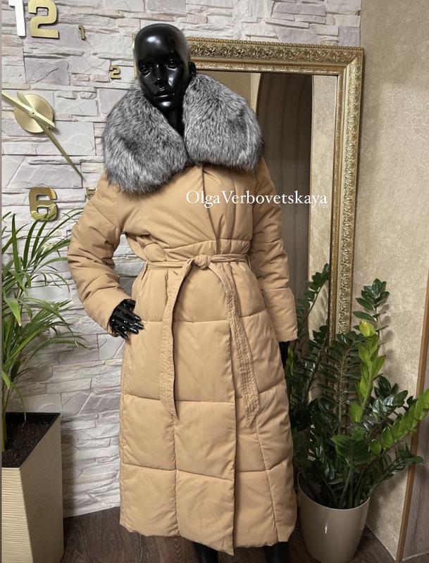 Шикарное пальто пуховик с воротником из чернобурки Длина 120 см Цвет кэмел С поясом Для правильного подбора размера пишите ваши параметры, обхват груди, талии и бедер Пересылка Новой Почтой Есть наложенный платёж с минимальной предоплатой