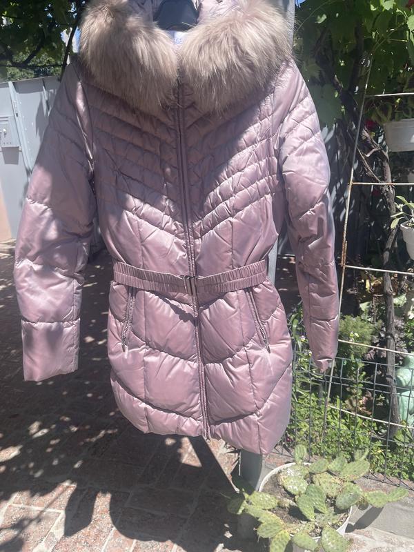 Очень теплый, наполнитель пух,Без недостатков! Одевался до 3х раз.Колир более похож на первом фото розовый с серым оттенком.Хутро натуральное (отстегивается) длинам 84,рукав 63,плечи 42,груды 48,беда 48.БЕЗ ТОРГА,