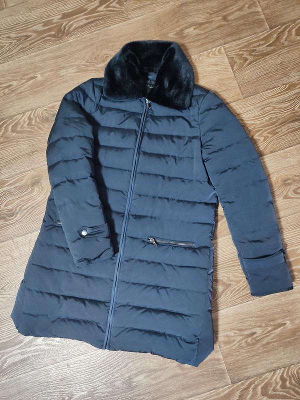 женский пуховик Zara в размере М. В идеальном состоянии. Воротник отстегивается. Цвет темно синий