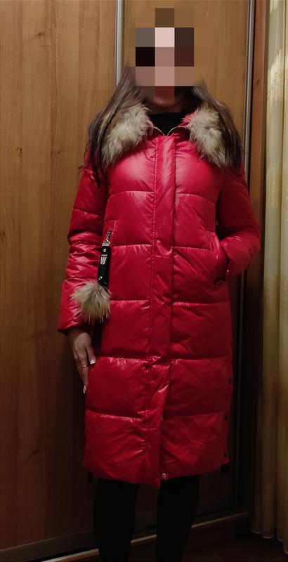 Теплый и длинный пуховик на нашу зиму,с натуральным мехом