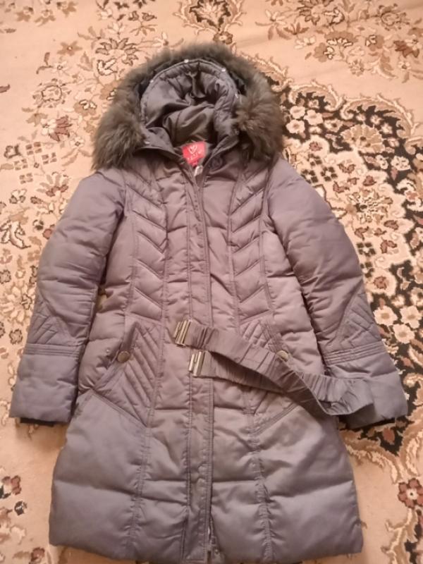 Пуховик женский рукав 67, длина 92, полуобхват груди 50. есть небольшая дирочка на рукаве...