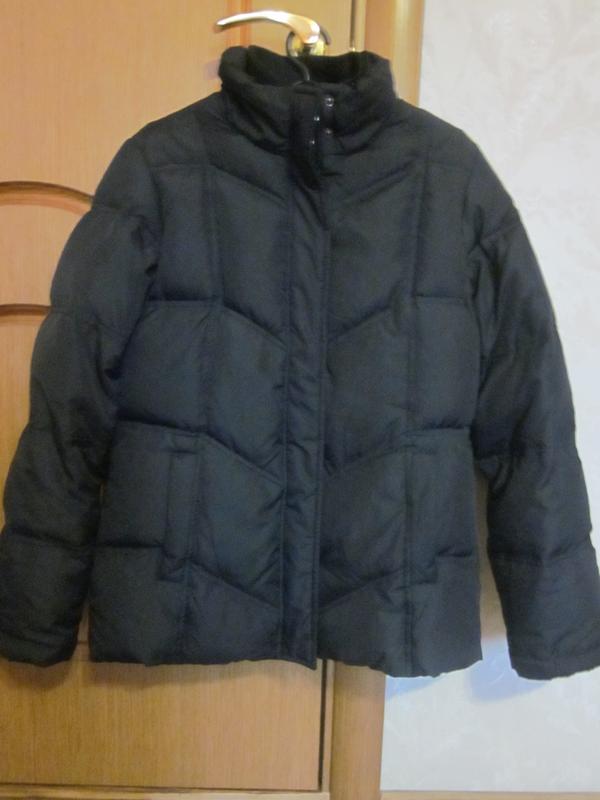 Теплый пуховик Blue Motion размер S В идеальном состоянии Цвет черный. Не тонкий, тепла. Пухом набитый отлично. застегивается на замочек + кнопки 2 кармана с внутренней стороны куртки есть кармашек ( фото) Куртка чистая. Капюшона нет и не было. Длина по спинке от низа горловины 70-71 см рукав 63 Соответствует размеру S указан S