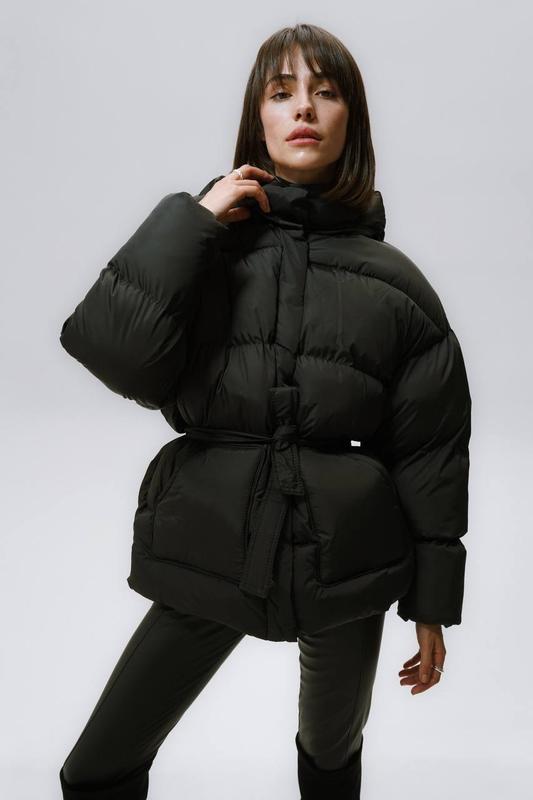 Пуховик с поясом. очень теплая куртка. короткий пуховик