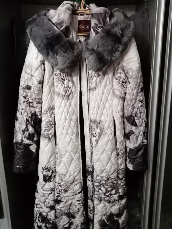 Зимнее пальто/пуховик женское с мехом кролика solare