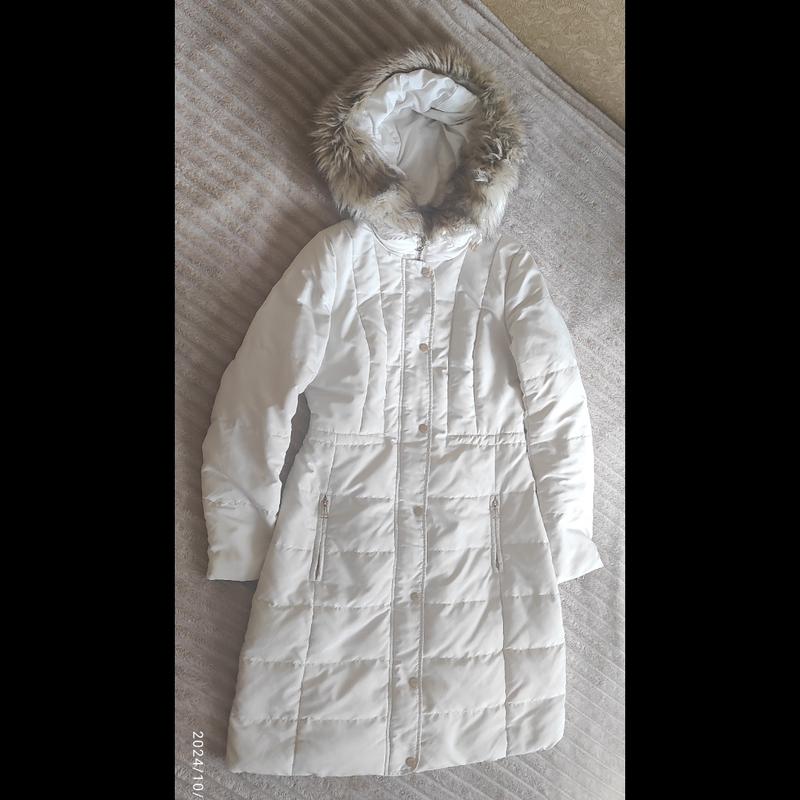 Пуховик с капюшоном O'stin в размере XS, но подойдет и на размер S, в теплом белом цвете ( даже ближе к молочному). В очень хорошем состоянии, не имеет никаких повреждений, фурнитура работает исправно. Единственный момент это от того, что он был в вакуумном пакете немного слеился пух, нужно расправить. Мех на капюшоне снимается, хоть и искусственный но очень хорошего качества. Наполнение: пух/перво (не лизе). С внутренней стороны на талии и снизу есть кулиски для регулировки объема. Замеры: длина 95 см, ширина плеч 39 см, полу объем груди 48 см, полу объем талии 42 см, полу ширина по низу 60 см, длина рукава 62,5 см. Пересылаю по Новой почте и Укр-быту, в том числе и через безопасную оплату.