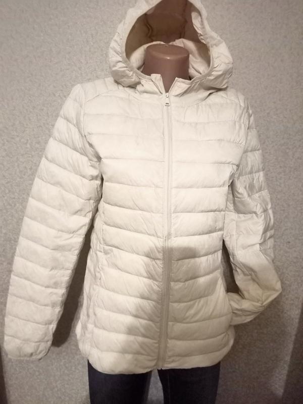 Пуховая куртка,с капюшоном,в идеальном состоянии, цвет слоновая кость,с двумя карманами, Замеры на фото.