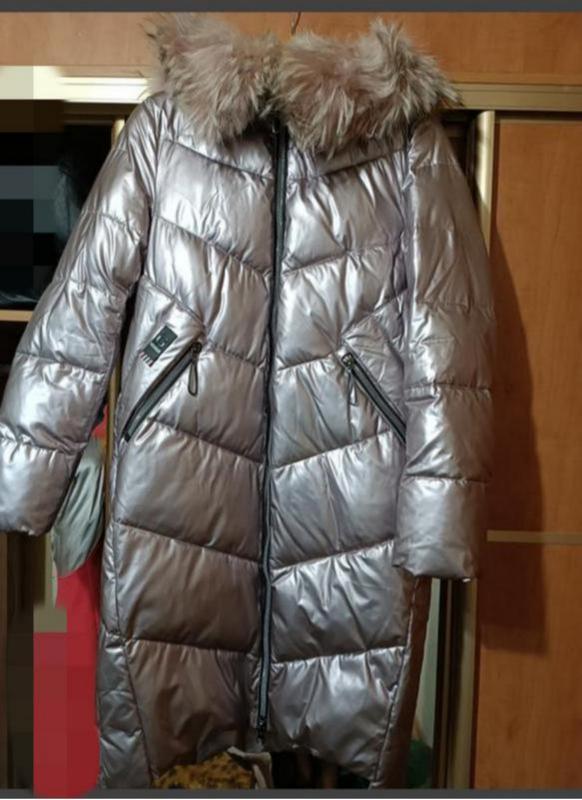 зимний пуховик стёганый с капюшоном, отделка натуральный мех