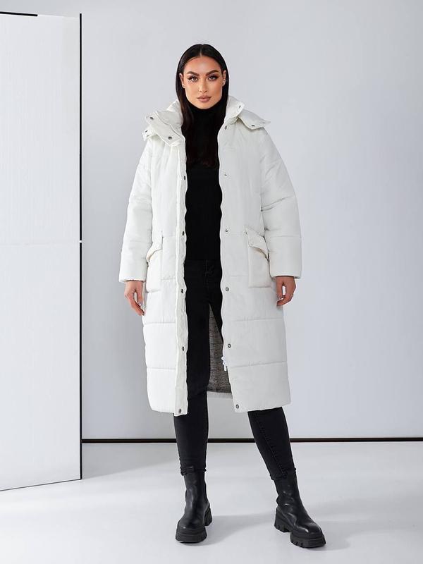 Куртка длинная на зиму пуховик теплый плащ с капюшоном и карманами пальто свободное прямое...