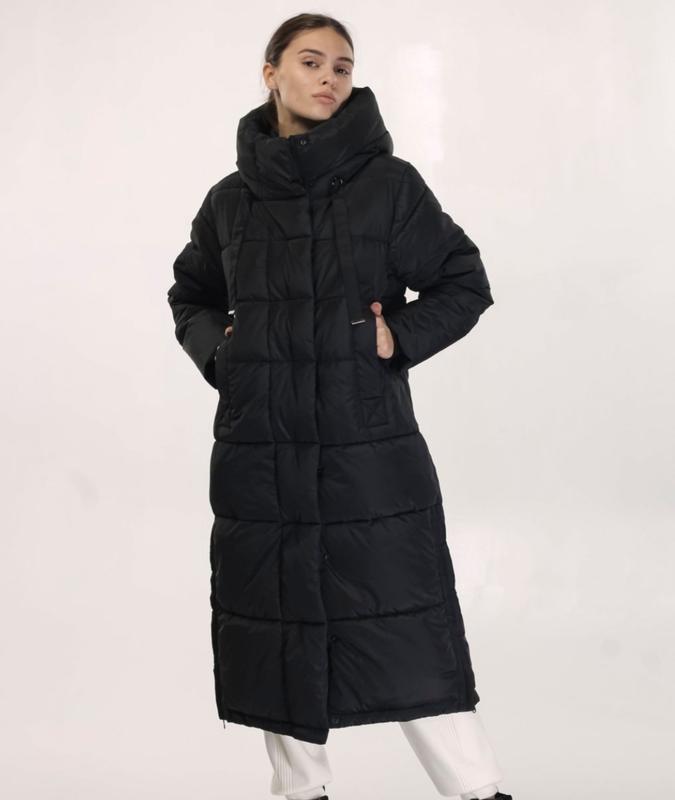Пальто пуховик, размер L, 40, будет и на 38 М. До - 20°. Наполнитель тинсулейт. ПОГ- -55,57/ ПОБ -55,59/ плечи -43/ рукав -66/ длина -110. Одет один раз, состояние нового.