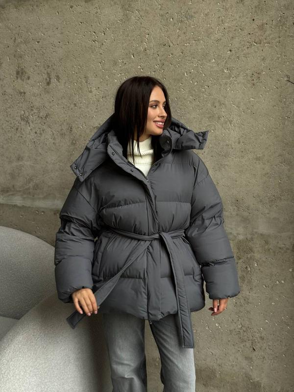 Теплящий зимний пуховик серого цвета