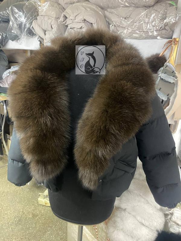 Куртка-пуховик (пуффер, пуфер) черная короткая женская зимняя с натуральным мехом финского...
