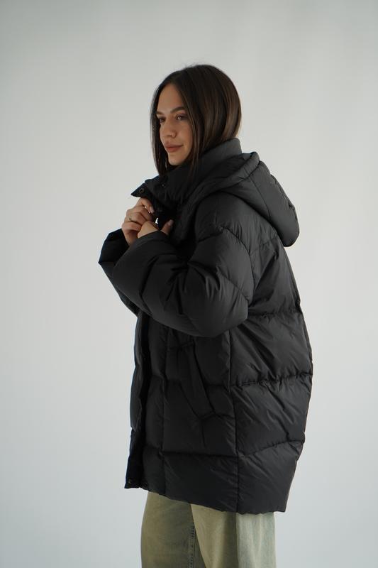 подовжений пуховик , легкий та теплий довжина по спині 80 під ручками 66 рукав від горловини 71