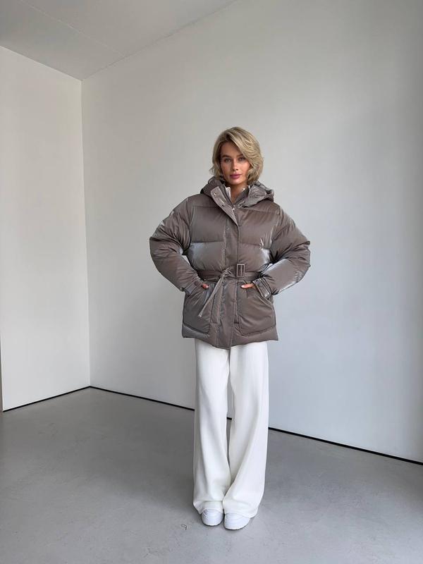 Зимняя куртка на пуховую пуховик с поясом и капюшоном
