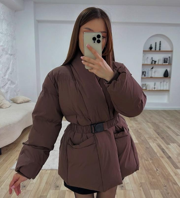 Пуховик під пояс шоколадний кімоно 10-13 робочих днів